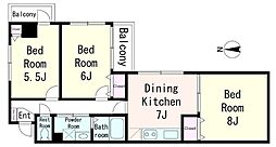| 2022年3月 | 9.0万円 | 55.1m² 3DK | 2階 |