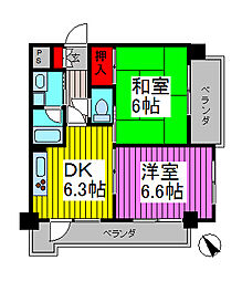 | 2025年9月 | 13.3万円 | 42.69m² 2DK | 6階 |