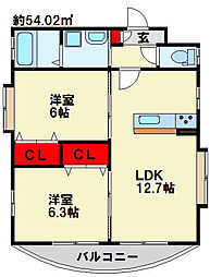 | 2025年9月 | 7.5万円 | 54.02m² 2LDK | 2階 |