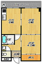 | 2012年3月 | 4.5万円 | 43.0m² 2DK | 1階 |