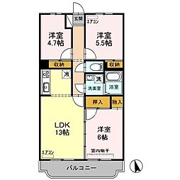 | 2013年2月 | 7.7万円 | 65.72m² 3LDK | 2階 |