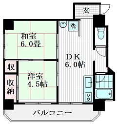 | 2009年3月 | 11.5万円 | 45.0m² 2DK | 6階 |