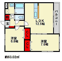 | 2025年12月 | 7.8万円 | 63.02m² 2LDK | 1階 |