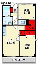 | 2024年11月 | 6.0万円 | 57.02m² 2LDK | 2階 |