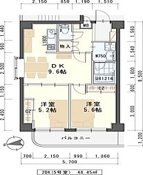 | 2025年6月 | 6.0万円 | 48.45m² 2DK | 6階 |