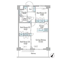 | 2026年2月 | 17.5万円 | 54.69m² 2LDK | 3階 |