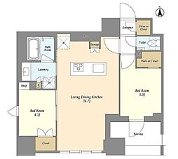| 2026年2月 | 19.6万円 | 43.49m² 2LDK | 14階 |