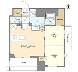 | 2026年2月 | 18.7万円 | 43.49m² 2LDK | 11階 |