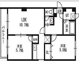 | 2023年6月 | 5.4万円 | 43.0m² 2LDK | 2階 |