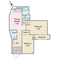| 2012年7月 | 7.0万円 | 52.2m² 2DK | 1階 |